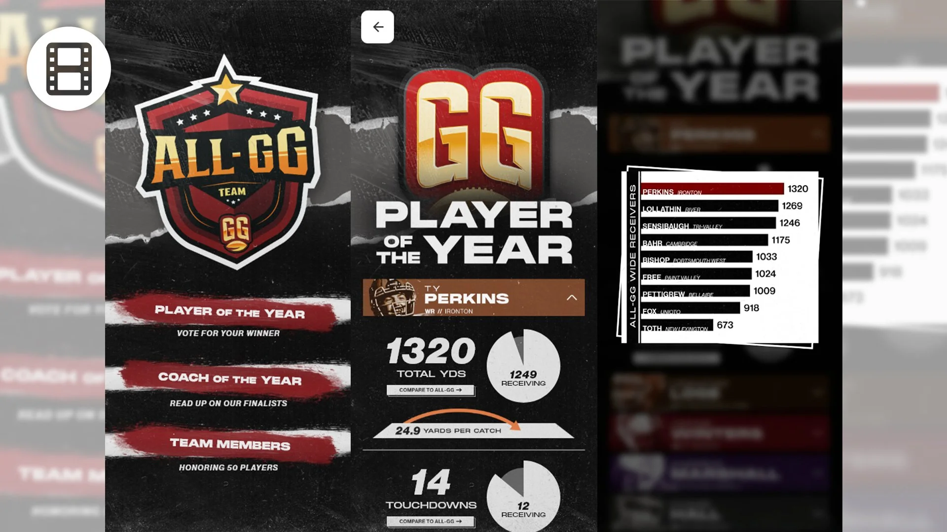 I expanded upon the original concept by animating the transitions and incorporating interactive infographics that compare each finalist’s statistics to those of the other All-GG players.